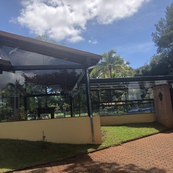 Descrição: Pergolado em Estrutura Mista de Madeira, Vidro, Aço e Concreto – Residencial Quinta da Boa Vista
